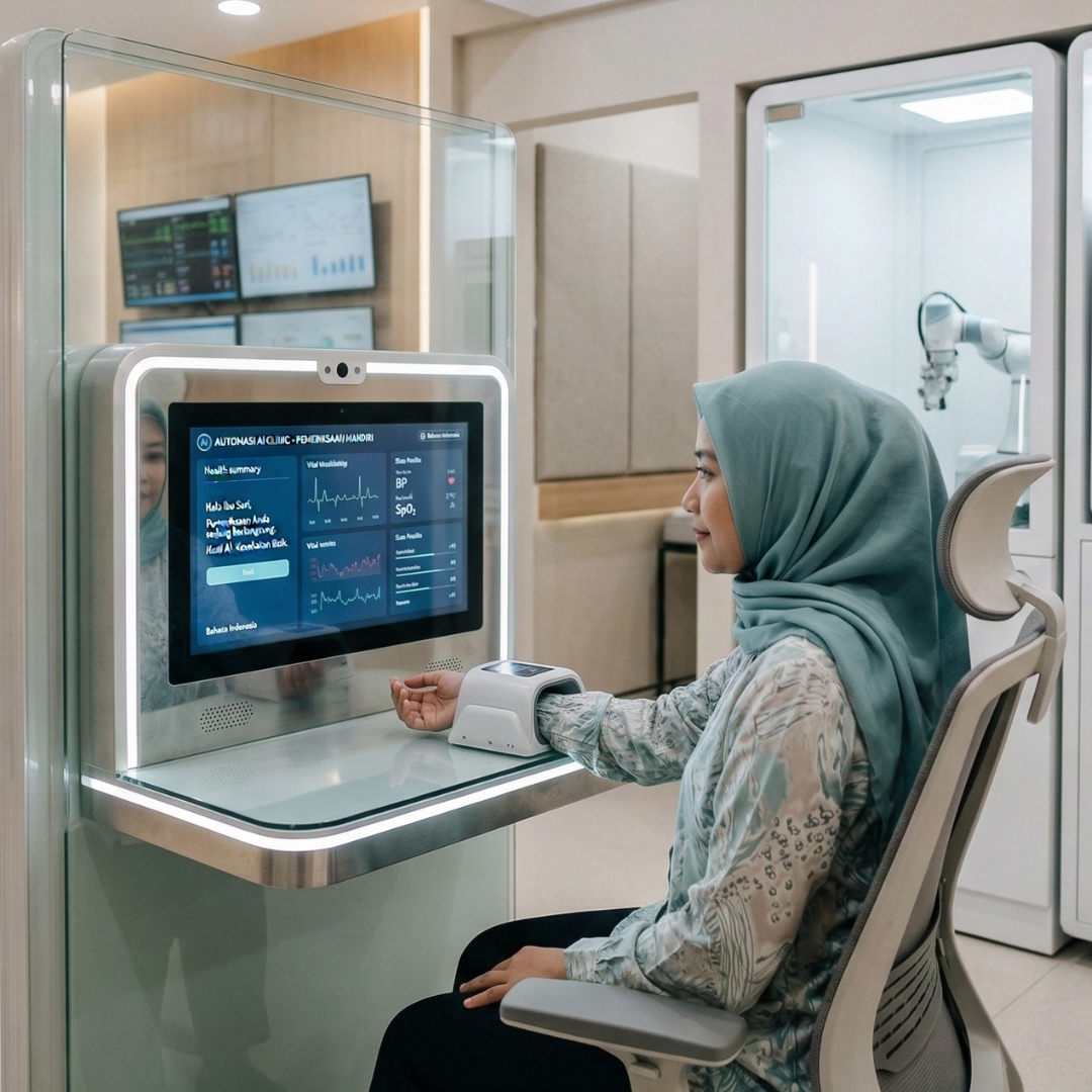Klinik kecil (estimasi investasi PoC/implementasi awal Rp750 jt): efisiensi triage hingga ~30% dan penurunan no‑show ~40% → payback 12–18 bulan. (Referensi: InReality; eHealth.)