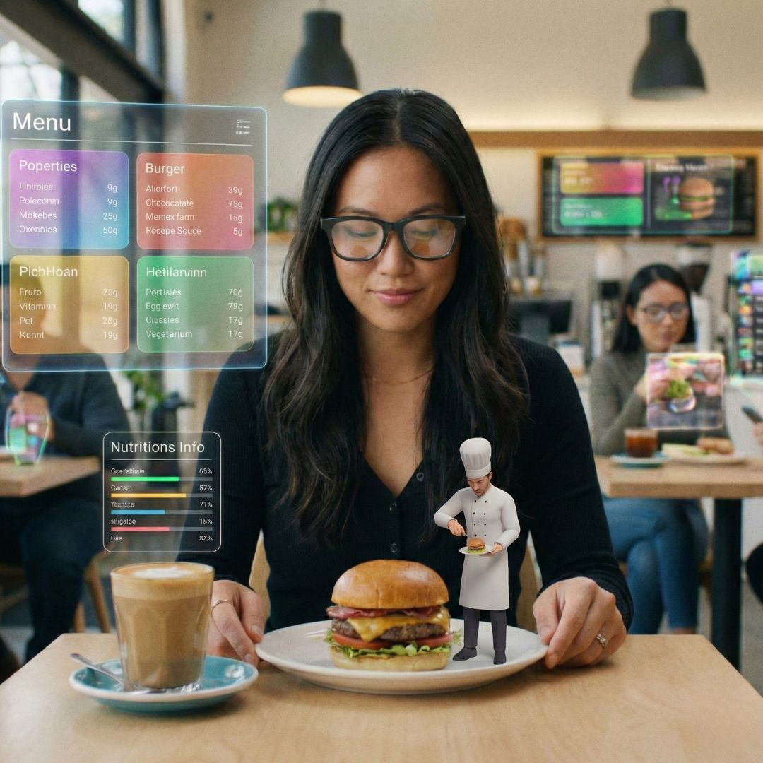 AR menghadirkan cara interaktif untuk menjelaskan produk makanan—dari label nutrisi interaktif hingga visualisasi porsi dan virtual try-on kemasan. Ini membantu marketing & sales mengurangi friction di titik keputusan pembelian dan mendukung training operasional.
