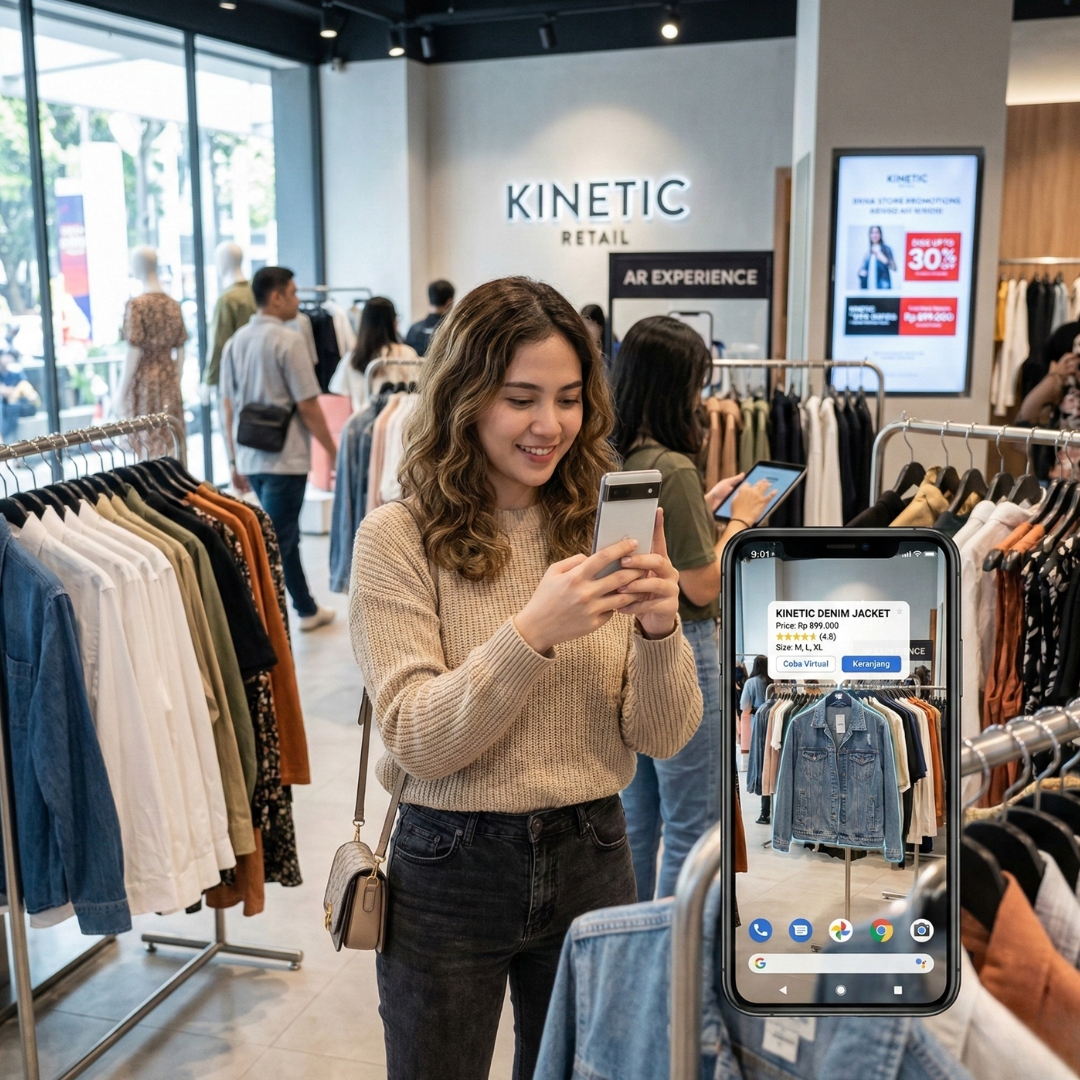 Secara praktis, AR overlay konten digital ke dunia nyata lewat smartphone atau browser (WebAR) maupun aplikasi (AR berbasis aplikasi). Di konteks B2B retail Indonesia, AR dipakai untuk: