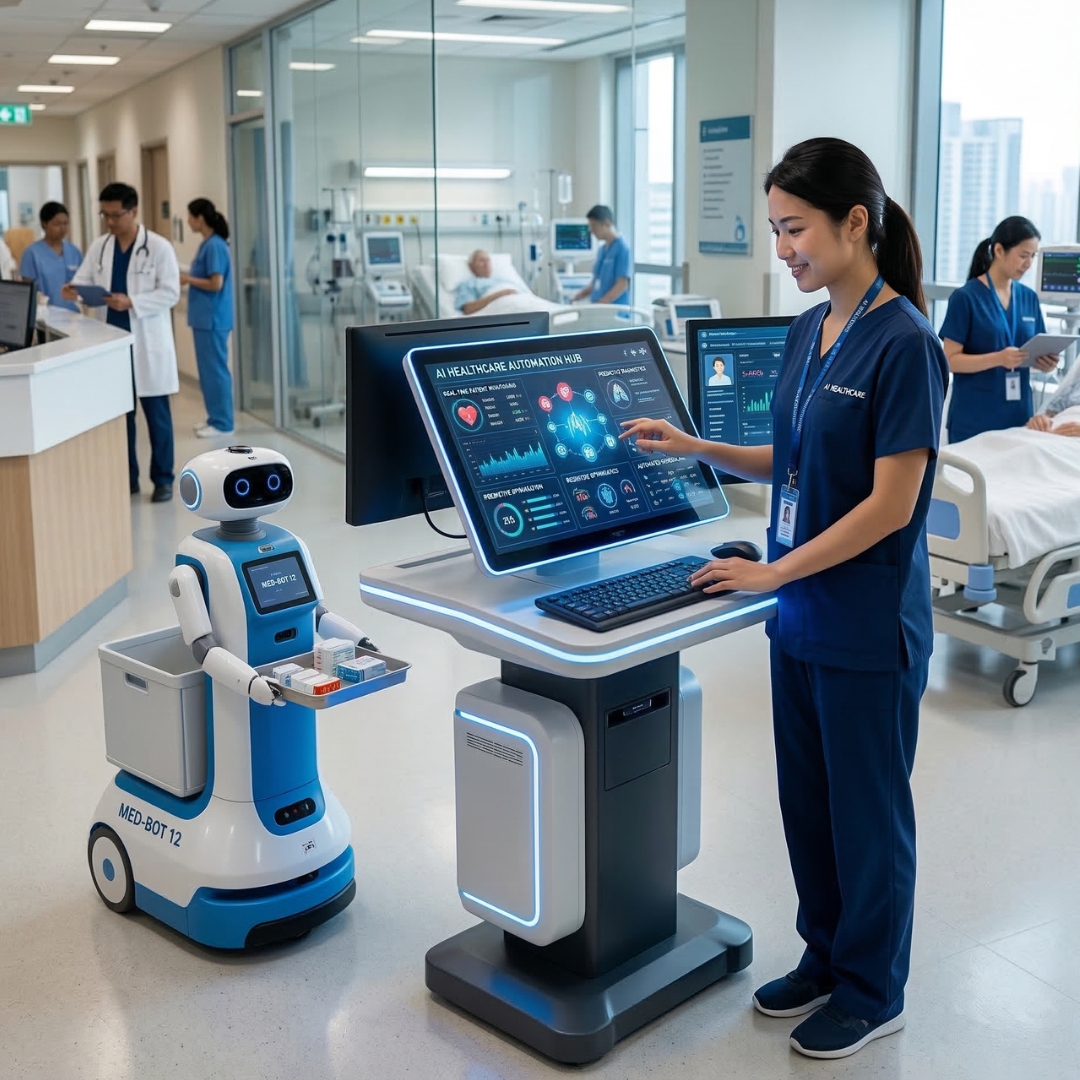 Automasi dapat memangkas beban administrasi, mempercepat alur pasien, dan mengurangi kesalahan manual—faktor krusial mengingat kontribusi biaya administrasi pada total biaya layanan kesehatan (lihat analisis Arsa Technology). AI juga mampu meningkatkan pengalaman pasien (NPS) dan kepatuhan proses klinis jika diimplementasikan dengan governance yang tepat (lihat pendekatan monetisasi IBM: IBM AI ROI). Untuk contoh metrik dashboard dan pelaporan operasional, lihat panduan KPI automasi hospital dari InReality (KPI Automasi Hospital).