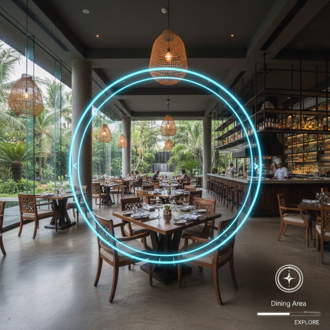 Virtual tour restoran adalah pengalaman interaktif 360 derajat yang memungkinkan pengunjung melihat ruang makan, bar, dapur, dan area lain secara online—bentuknya bisa foto 360, Matterport 3D, atau pengalaman VR sederhana. Tur ini biasa tampil di Google Business Profile, website restoran, media sosial, dan platform booking untuk memberi rasa percaya sebelum kunjungan (lihat panduan upload Google 360 dan praktik industri di virtualspace.global). Manfaatnya: transparansi visual meningkatkan pre-visit reassurance dan peluang booking. Untuk daftar pengambilan gambar yang direkomendasikan, lihat shot list.
