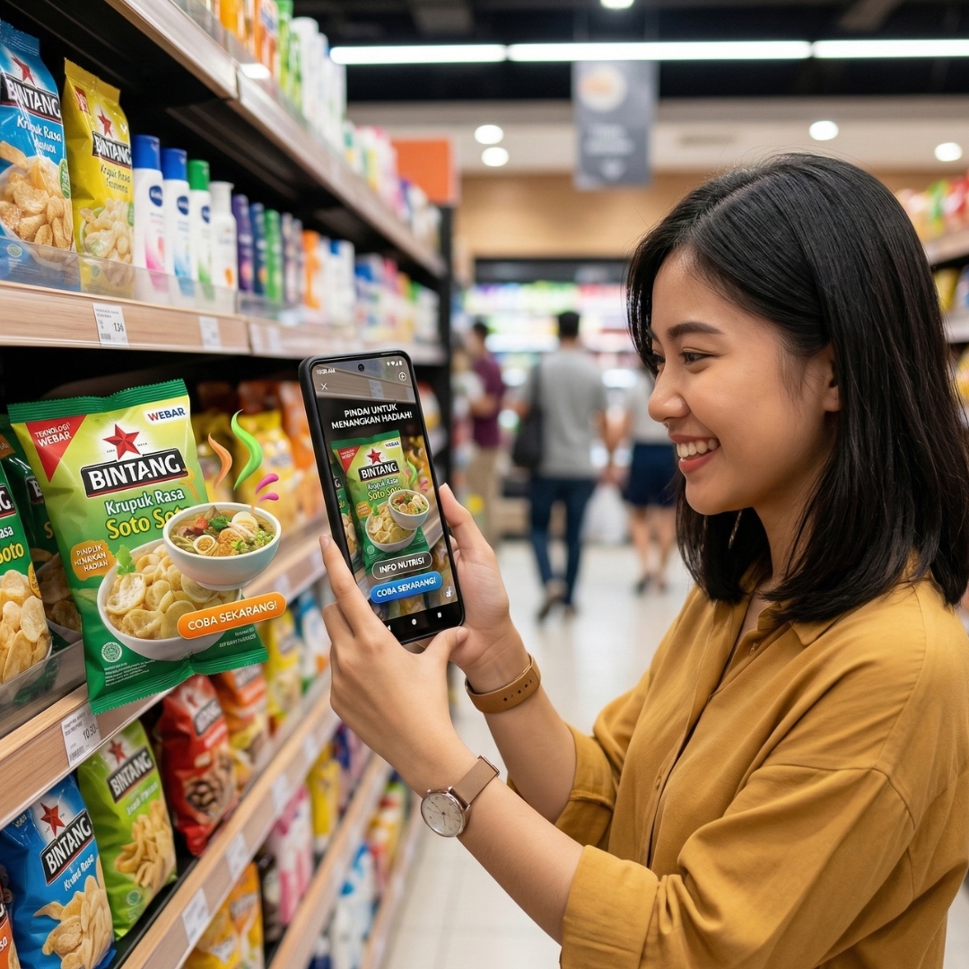 WebAR memungkinkan konsumen mengakses pengalaman AR hanya dengan membuka URL atau memindai QR code pada kemasan—mengurangi hambatan adopsi aplikasi (no‑app friction) dan meningkatkan engagement di titik penjualan. Untuk FMCG, use‑case konkret termasuk try‑on kosmetik, visualisasi resep dari kemasan makanan, demo produk, dan kampanye kemasan yang unlock promo atau game interaktif. Lihat contoh praktik di The Intellify dan panduan untuk food brands di The Intellify (food). Tindakan berikutnya: tentukan satu use‑case pilot (mis. in‑pack recipe AR) untuk divalidasi secara cepat — inspirasi kampanye ada di ide kampanye AR FMCG.