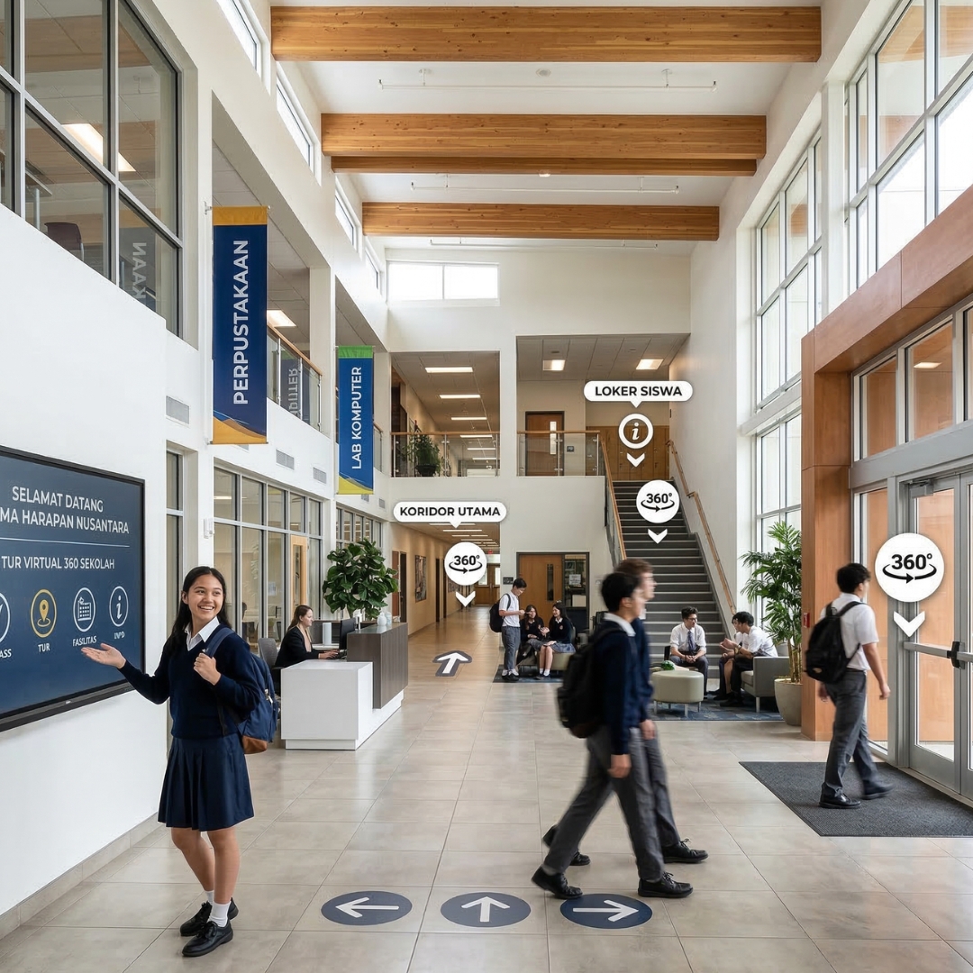 - Untuk contoh studi kasus dan metrik terukur di sektor pendidikan, lihat studi kasus virtual tour sekolah.